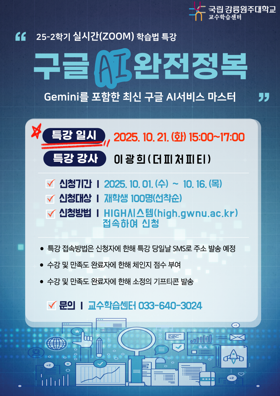 fnctId=bbs,fnctNo=877 [교수학습센터] 2025학년도 2학기 실시간 학습법 특강 신청 알림 작성일 2025.10.01 작성자 정하나 조회수 214 첨부파일 첨부파일이(가) 없습니다.
