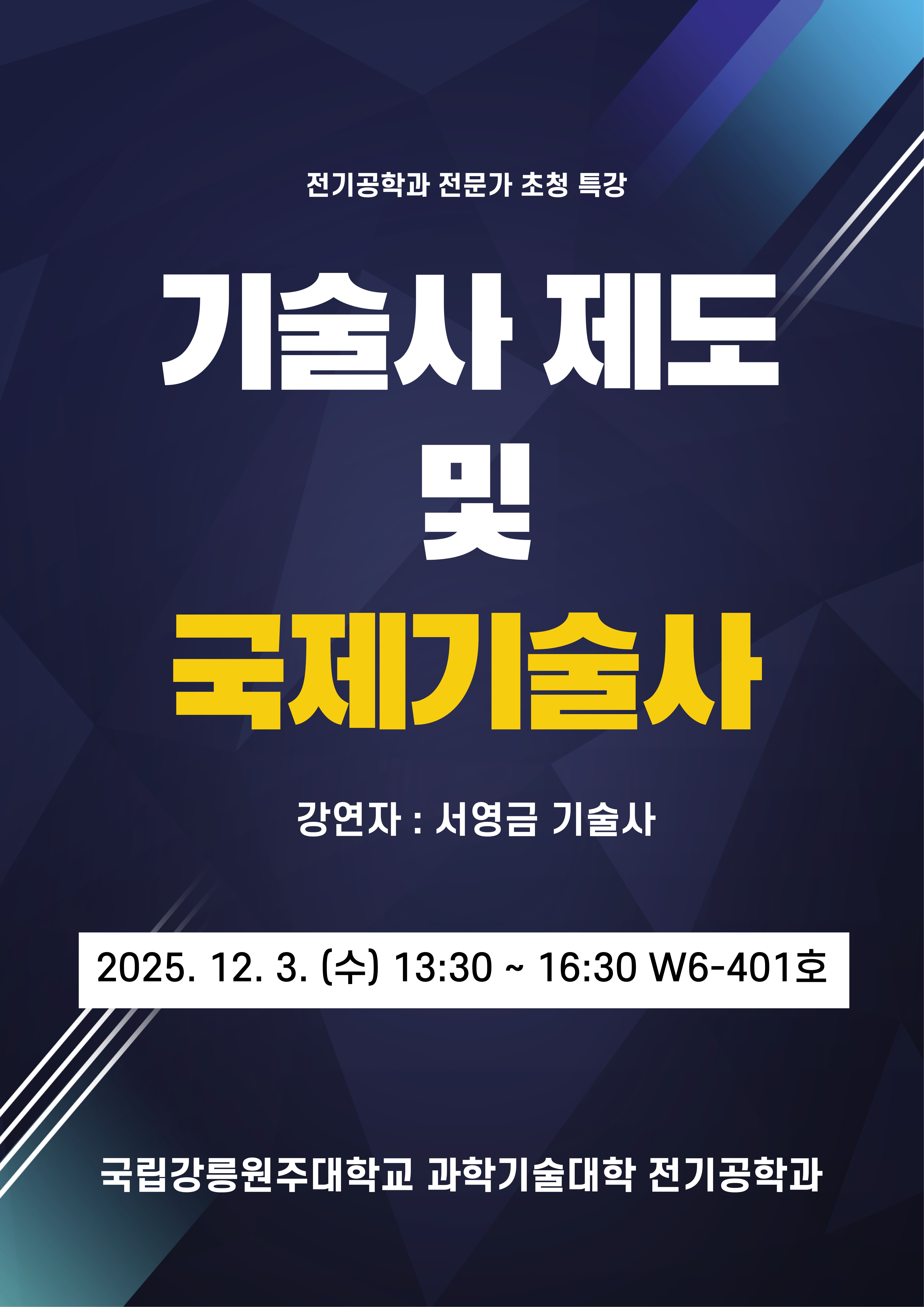 fnctId=bbs,fnctNo=877 [필독]전기공학과 전문가 특강 기술사 제도 및 국제기술사 작성일 2025.11.24 작성자 정하나 조회수 41 첨부파일 첨부파일이(가) 없습니다.